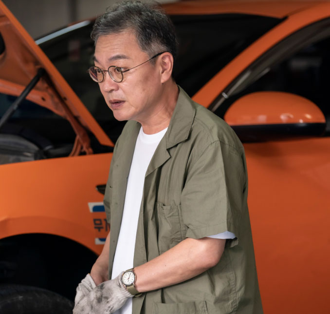 자동차기업 신차개발팀 선임 연구원 출신이며 현재는 무지개 운수 정비실 책임을 지고 있다 몸은 쉬어도 입은 쉬지 않는 그는 일반택시 회사에는 일반택시를 정비하며 모범택시 운행이 시작을 하게 되면 도기를 백업하는 역할이다